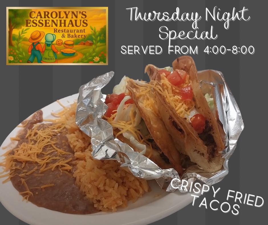 Francisco Villanueva, and his wife Karina, extend a warm invitation to visit Carolyn's Essenhaus! They promise to uphold the tradition of homemade goodness! You'll find the same delightful experience and fabulous homemade cooking when you visit... continuing Carolyn's family recipes!